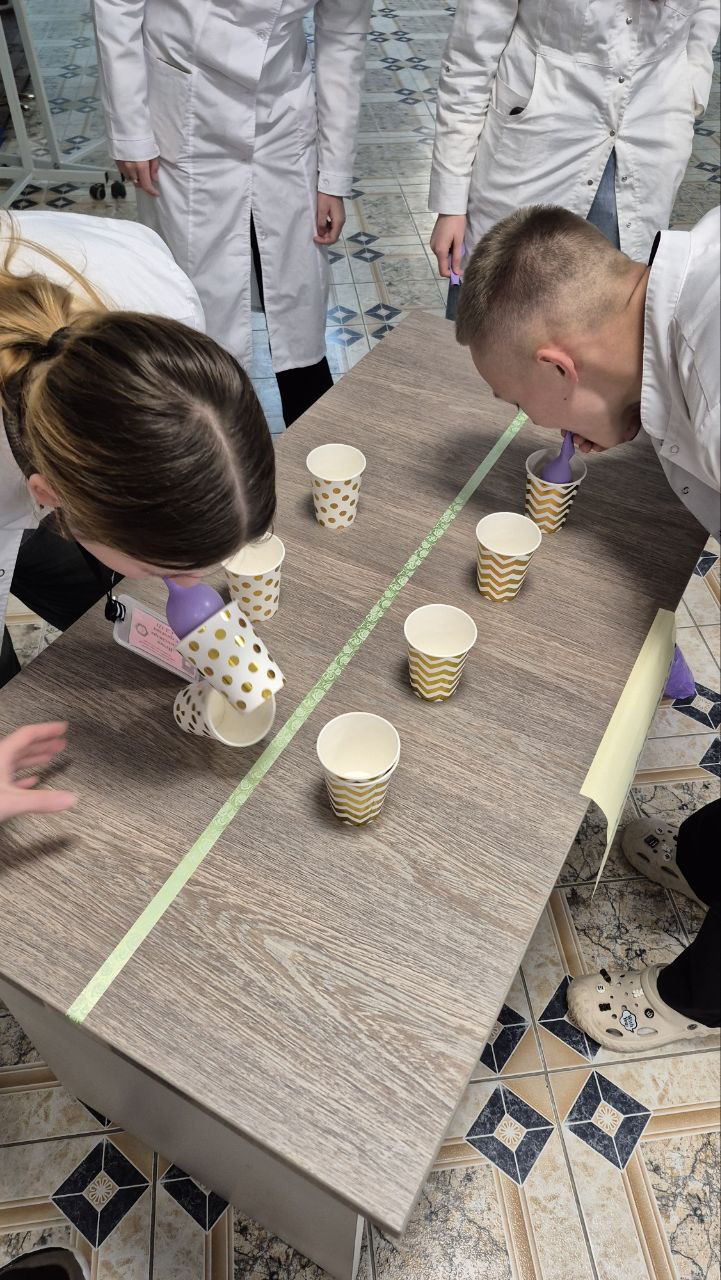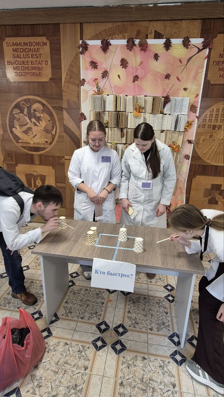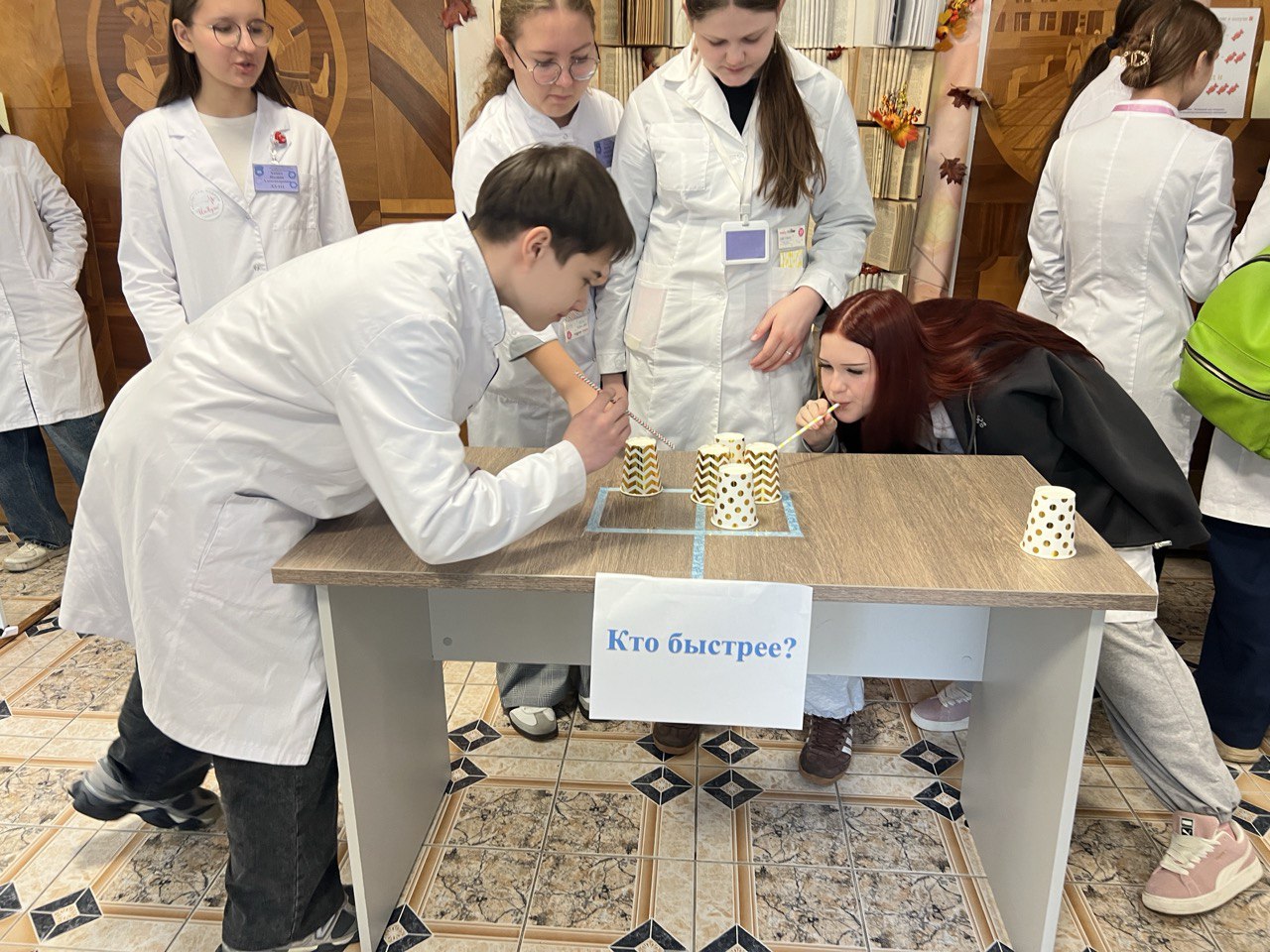 Были проведены тематические задания: Задание «Пульмотест», по лабиринту, с помощью воздуха, нужно было провести теннисный шарик»; Задание «Молчание легких», учащимся нужно было задержать дыхание, как можно дольше; Задание на скорость, участникам при помощи трубочки и воздушных шариков нужно было переместить стаканчики в определенном порядке.