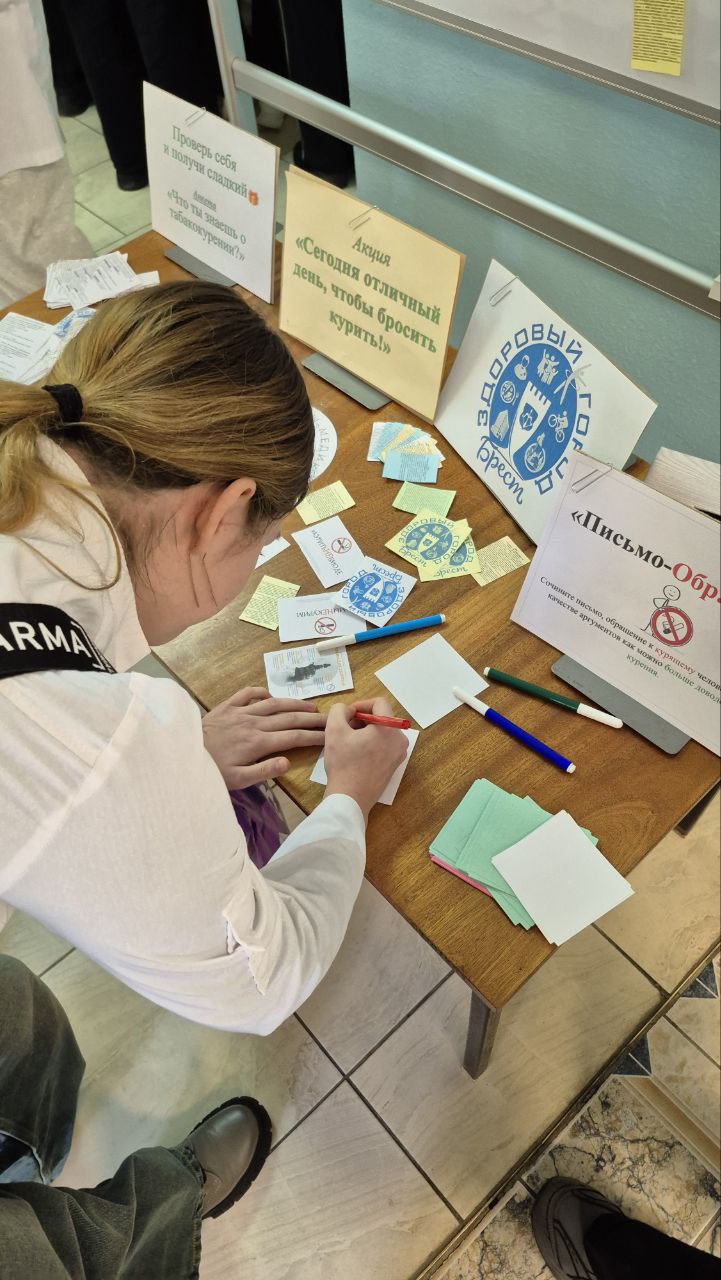 У всех учащихся и работников колледжа была возможность написать письмо-обращение к курящим людям, где, приводились в качестве аргументов как можно больше доводов против курения.