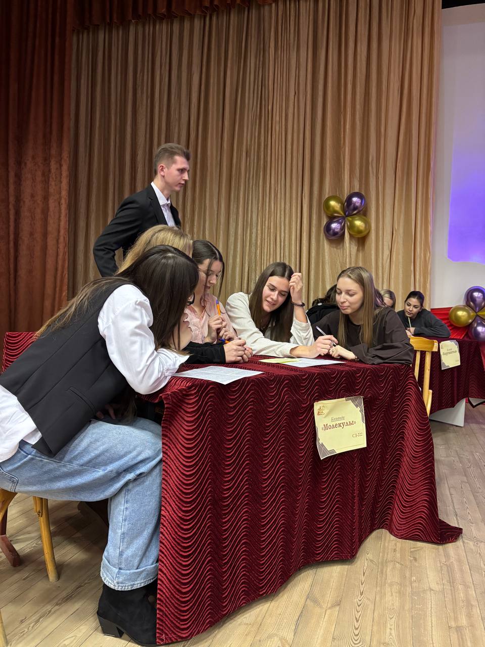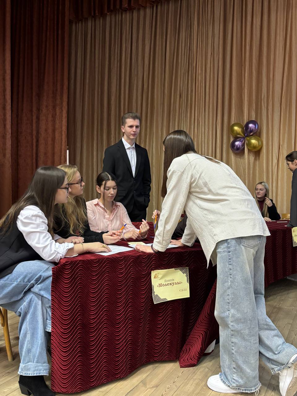 В викторине приняли участие четыре команды обучающихся учебных групп нового набора: СД-222 («Молекулы»), ЛД-223 («Мыслители»), СД-224 («Нарушители»), СД-223 («Ангелы в халатах»).
