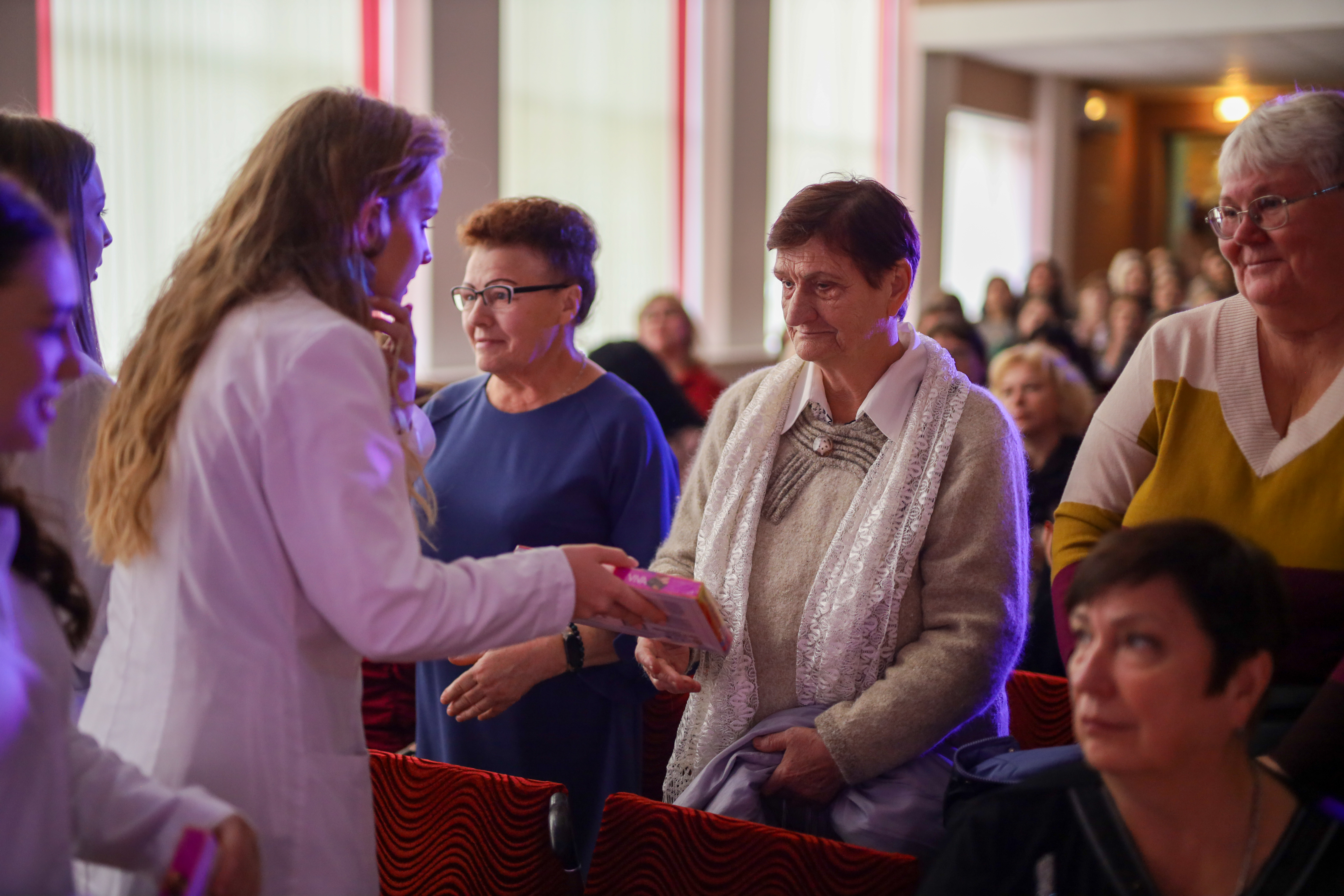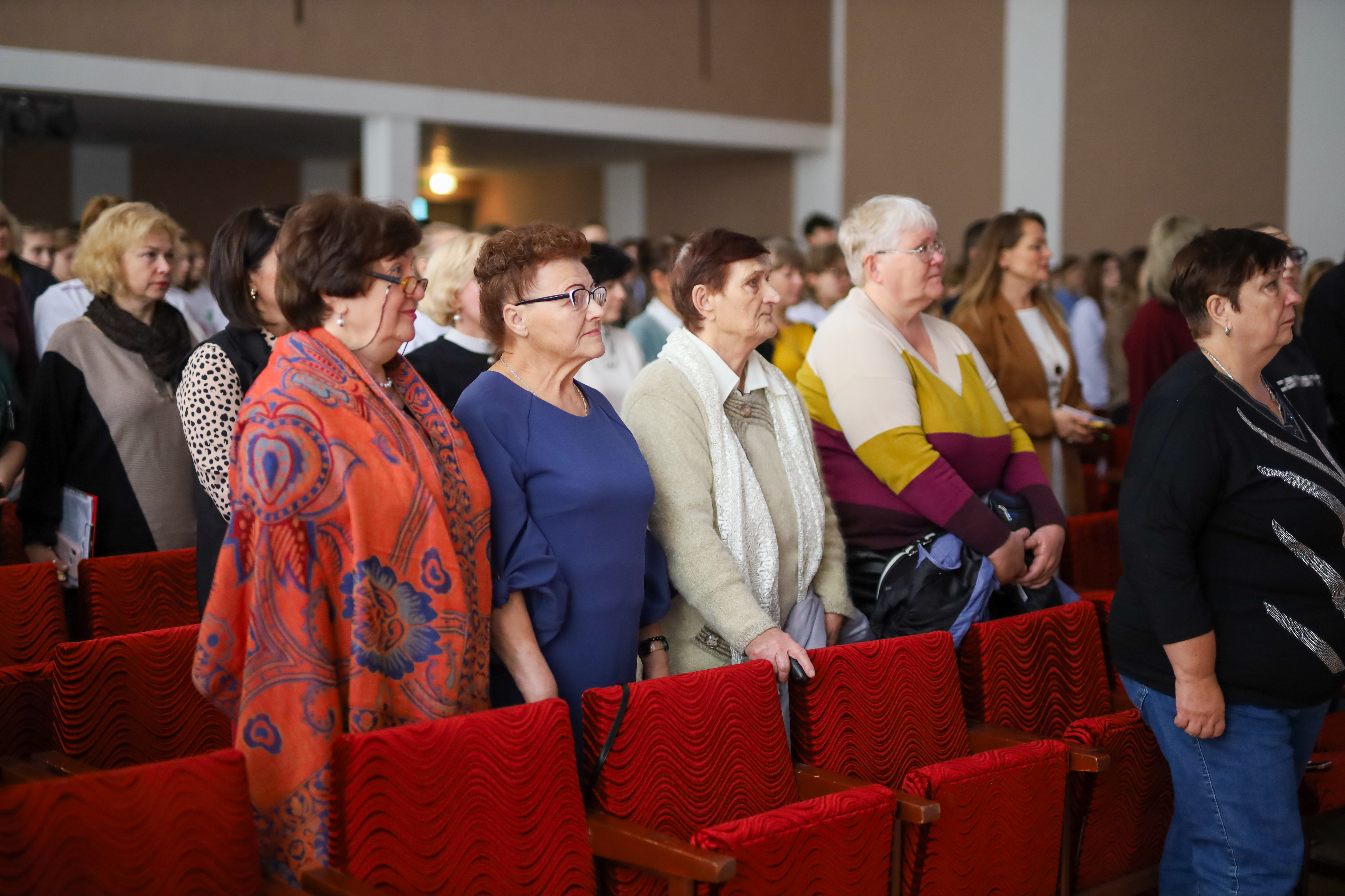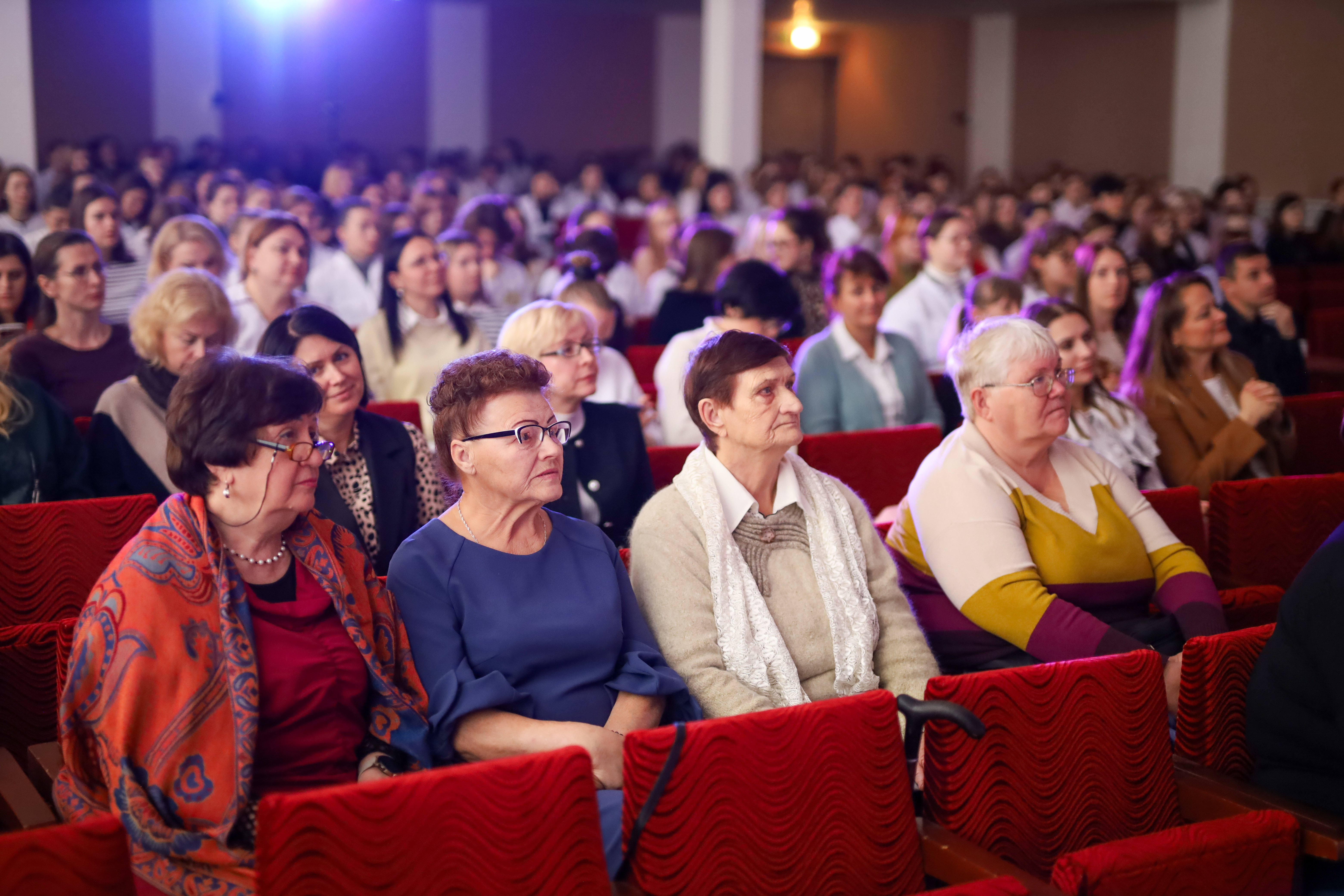 Особые слова признательности были адресованы ветеранам педагогического труда, которые продолжают трудиться, являясь примером для молодых преподавателей, образцом глубокой преданности своему призванию. В знак уважения и благодарности ветеранам труда вручили праздничные открытки и сувениры, созданные руками волонтеров отряда «Милосердие». Со сцены в адрес преподавателей звучали искренние слова признательности и благодарности. Концертные номера были пронизаны добротой, любовью, талантом. Все выступления сопровождалось бурными аплодисментами. В зале царила атмосфера позитива, тепла, уюта и хорошего настроения.