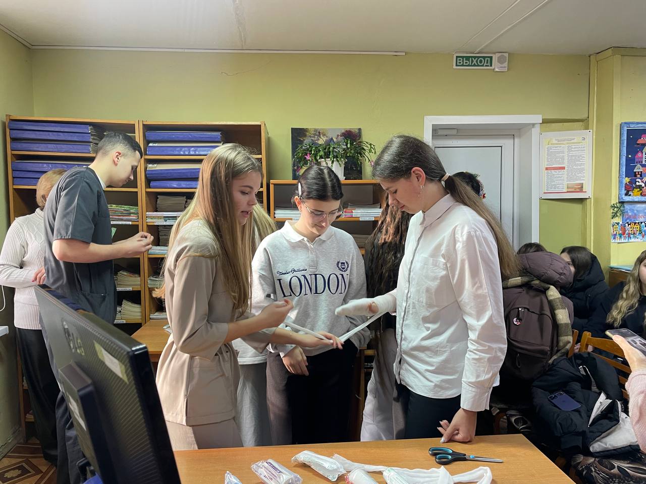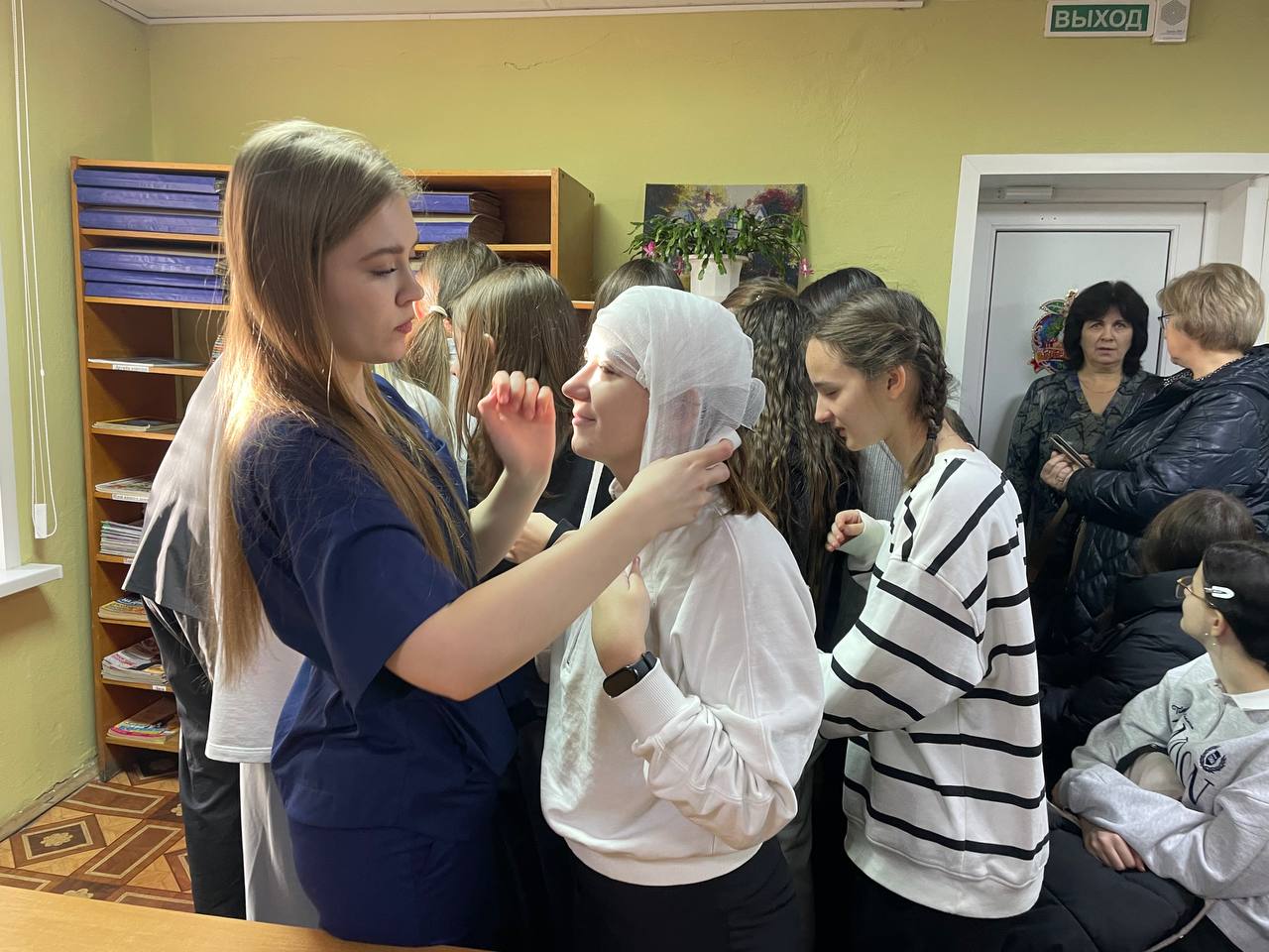 Учащиеся специальности «Лечебное дело» рассказали будущим абитуриентам о специфике получения медицинского образования, об организации учебных и практических занятий, волонтерской и воспитательной деятельности в колледже, проходных баллах и контрольных цифрах приема в 2025 году, при поступлении в Брестский медицинский колледж. А также провели мастер-класс по различным видам повязок, инъекций и способам упаковки.